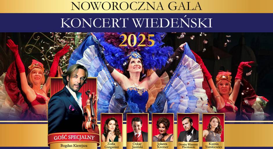 NOWOROCZNA GALA - Koncert Wiedeński został stworzony z potrzeby połączenia najwyższej klasy profesjonalizmu i serca natchnionego muzyką. Noworoczna Gala dzięki swojej wyjątkowości pozwoli zbliżyć się do tradycyjnego koncertu galowego w Wiedniu, pełnego szelestu błyszczących sukien, wśród widoku rozlewanego szampana i odgłosu stukających obcasów. Zapraszamy w tę wspólną, ponad dwugodzinną, podróż muzyczną!