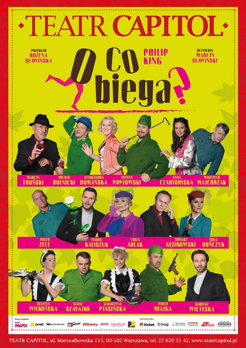 „O co biega?“ to jedna z najzabawniejszych światowych fars autorstwa Philipa Kinga. Pełna zaskakujących zwrotów akcji historia, z minuty na minutę, choć wydaje się to już niemożliwe, staje się jeszcze śmieszniejsza. Do samego końca nie wiadomo, kto jeszcze pojawi się nagle w drzwiach lub niespodziewanie wyskoczy z szafy!