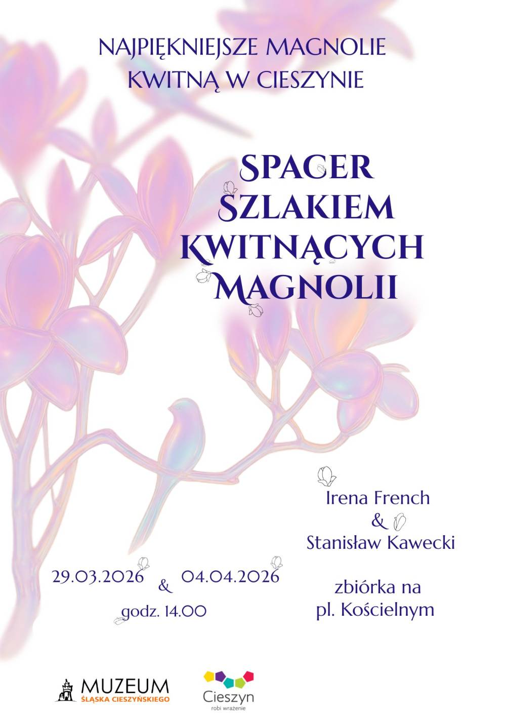 SPACER SZLAKIEM CIESZYŃSKICH, KWITNĄCYCH MAGNOLII