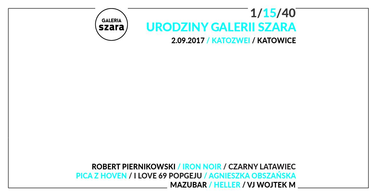 15 urodziny i 1 rocznica otwarcia Szarej w Katowicach oraz bądź co bądź 40-stka jej kuratora - Łukasza Dziedzica (muzyka, wydawcy, organizatora wydarzeń muzycznych) to świetna okazja do spotkania i wspólnego świętowania w gronie osób, które współtworzyły działania Galerii Szara oraz wspierały i kibicowały jej przez te wszystkie lata.