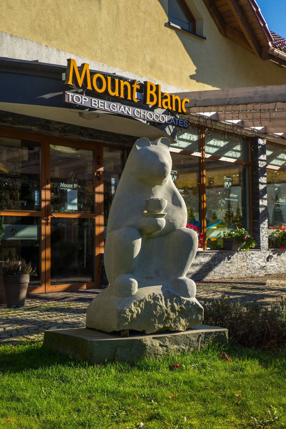 Niedźwiadek znajduje się obok Pijalni Czekolady i Kawy Mount Blanc, przy głównej ulicy miasta. Odwiedzając to miejsce można sobie zrobić "słodki przystanek".