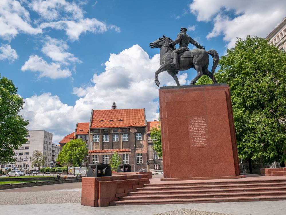 Zwiedzanie Katowic na rowerze, Pomnik Piłsudskiego, fot. Damian Berłowski - roweremposlasku.pl