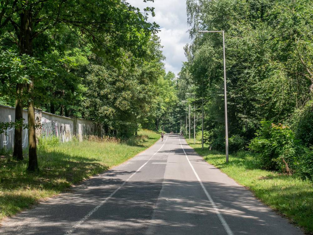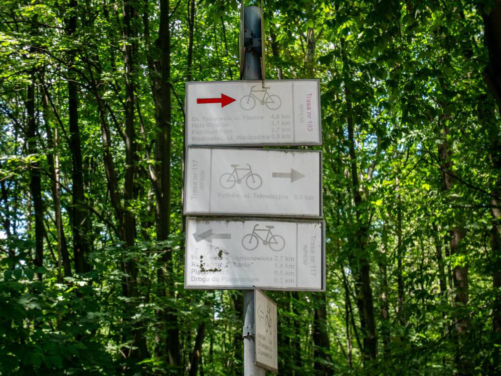 UWAGA! W oryginalnej wersji szlaku przejazd uniemożliwia budowa nowego stadionu GKS Katowice. W Lasach Panewnickich wyznaczono objazd.